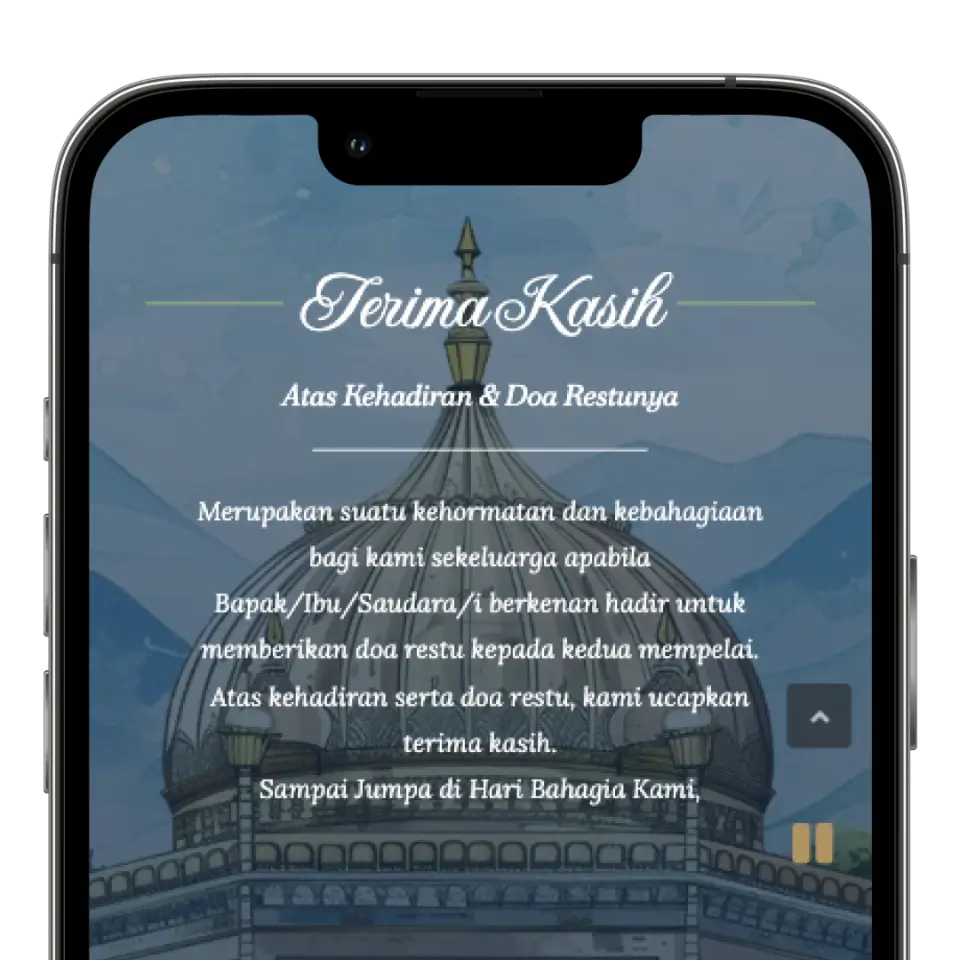 Tersedia dalam berbagai genre dan suasana, cocok untuk memperkuat kesan elegan, romantis, atau syahdu di undangan Anda.