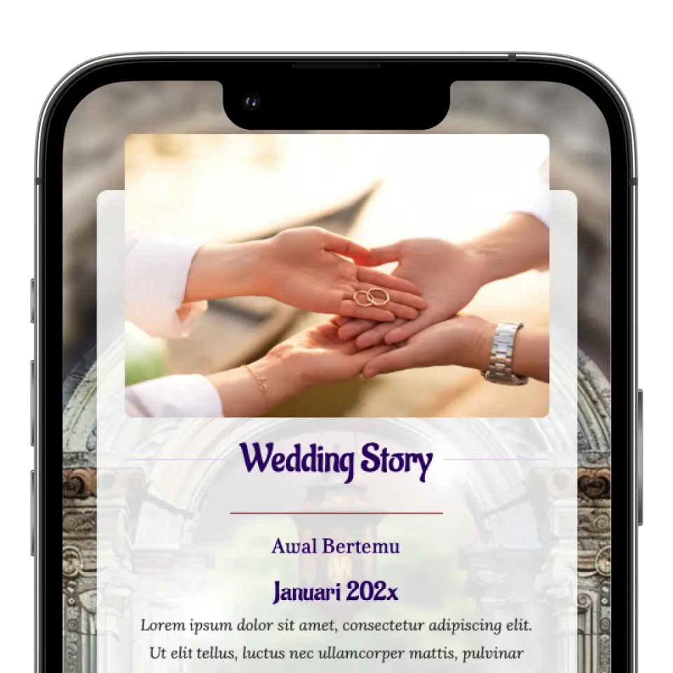 Luxee menghadirkan template undangan digital pernikahan dengan efek parallax yang memukau, menggabungkan keindahan visual, transisi halus, dan layout yang romantis. Cocok untuk kamu yang ingin memberikan kesan berkelas, modern, dan personal dalam undangan pernikahan.