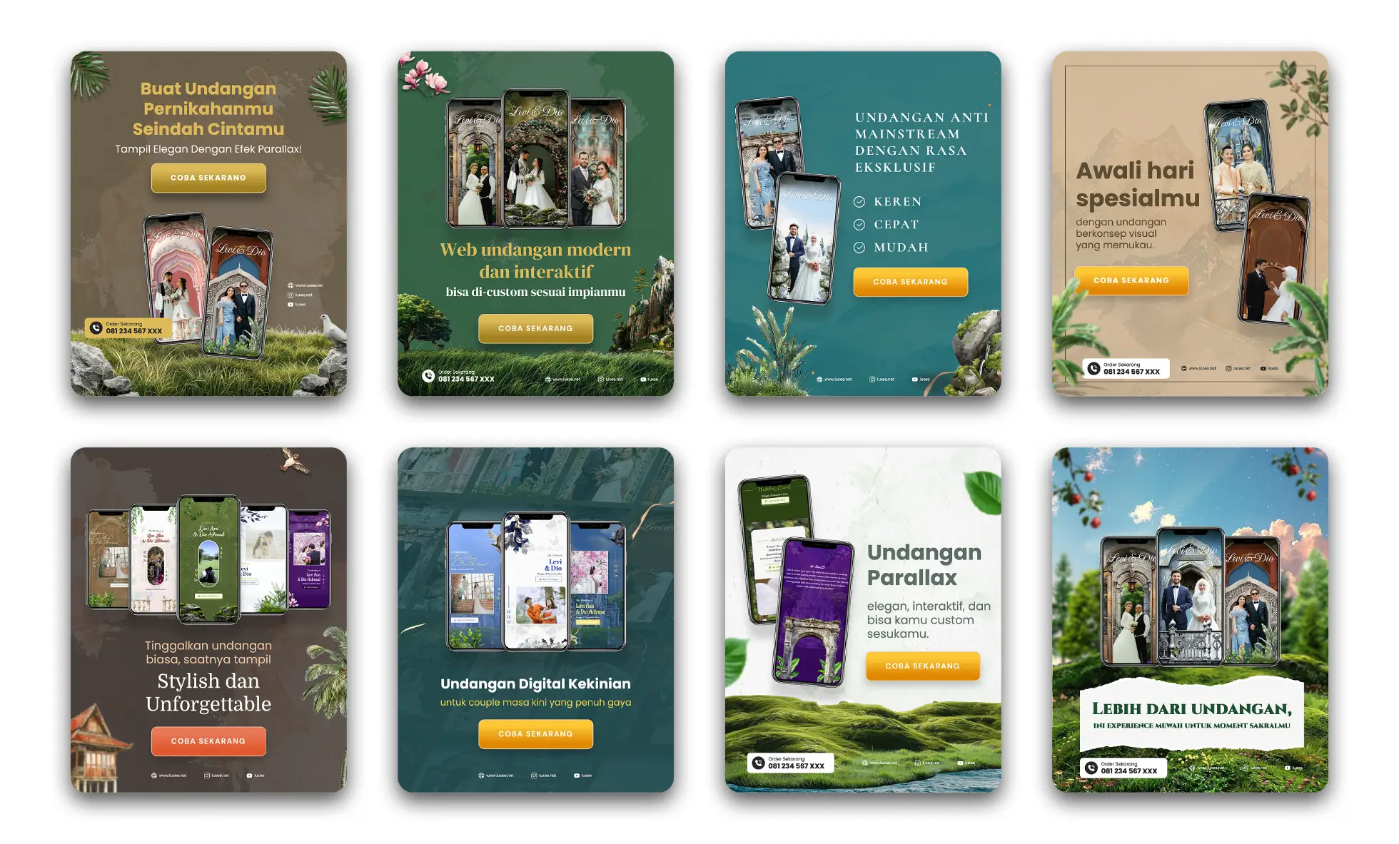 Ganti foto, teks, dan detail acara hanya dalam hitungan menit. Tanpa perlu skill desain.